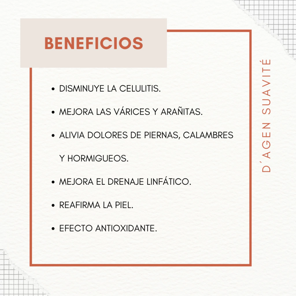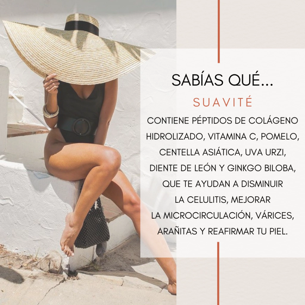 Fórmula única sobre una base de Péptidos Bioactivos de Colágeno Hidrolizado y Vitamina C combinados con factores anticelulíticos. Mientras aumenta la hidratación, tonicidad, elasticidad y brillo de tu piel ayuda a aliviar y mejorar la celulitis, várices y síndromes venosos funcionales como edemas, dolores de piernas, calambres y hormigueos.